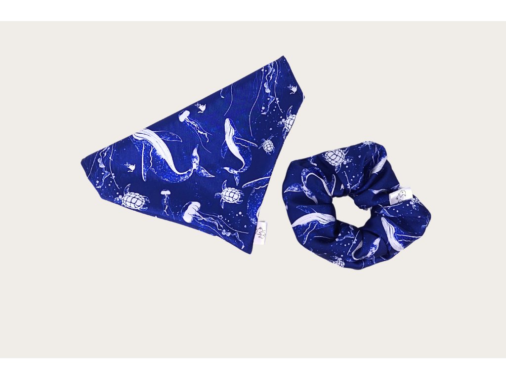 Scrunchie gumička je ušitá ze stejného materiálu s certifikací OEKO-TEX, jako bandana. Můžete se tedy krásně sladit se svým čtyřnohým kamarádem! Scrunchie je navržena tak, aby byla šetrná k vlasům a zároveň přidala vašemu outfitu nádech elegance a hravosti.